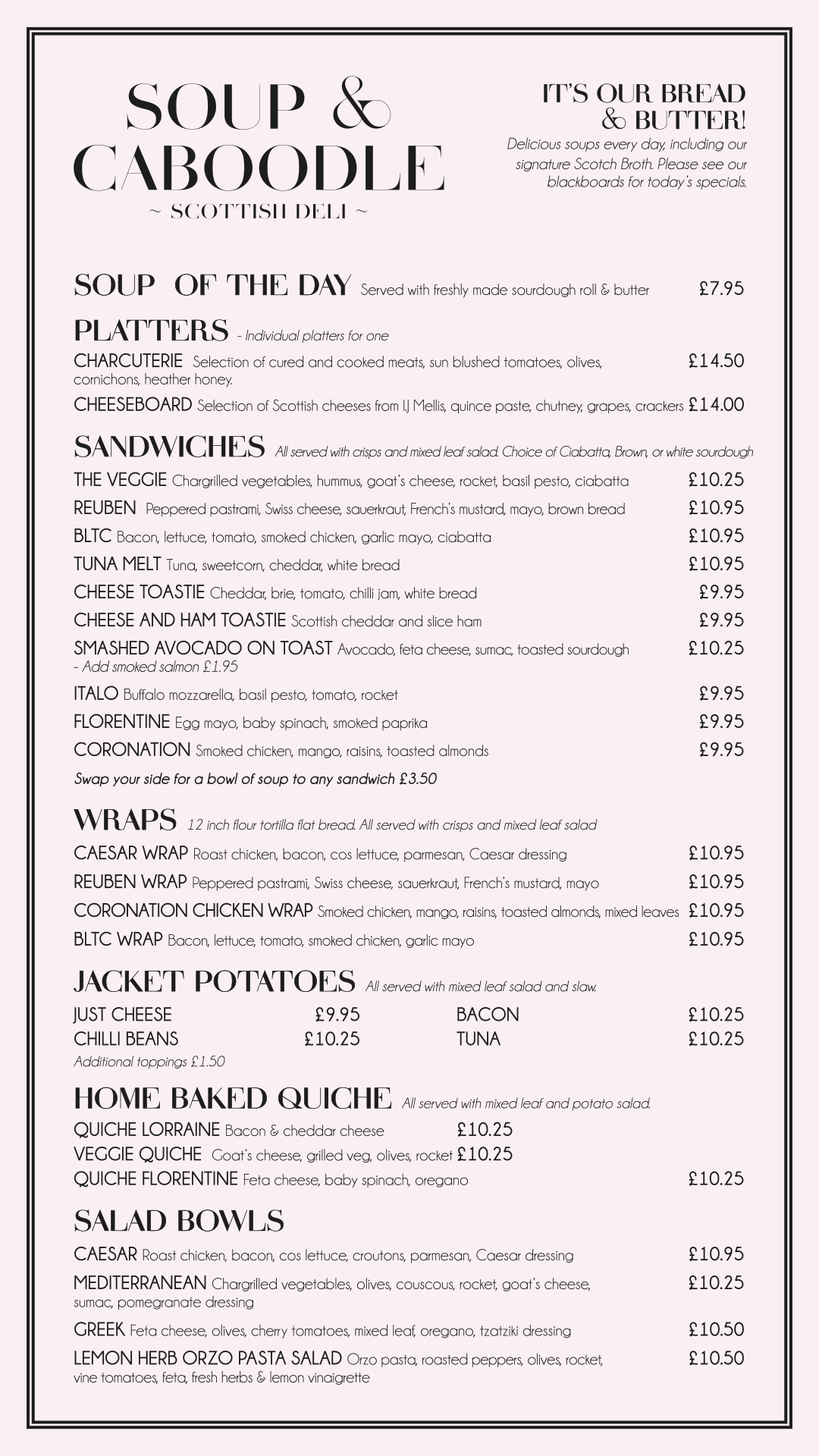 Browse the menus at Bonnie & Wild's Scottish Marketplace. Click on the cross below to see what's on offer from each of the restaurants and kitchens inside our Food Hall. Then simply visit the counter to place your order, where you'll be given a buzzer to let you know when your food is ready. Meanwhile, head up to one of our bars to order your drinks.
