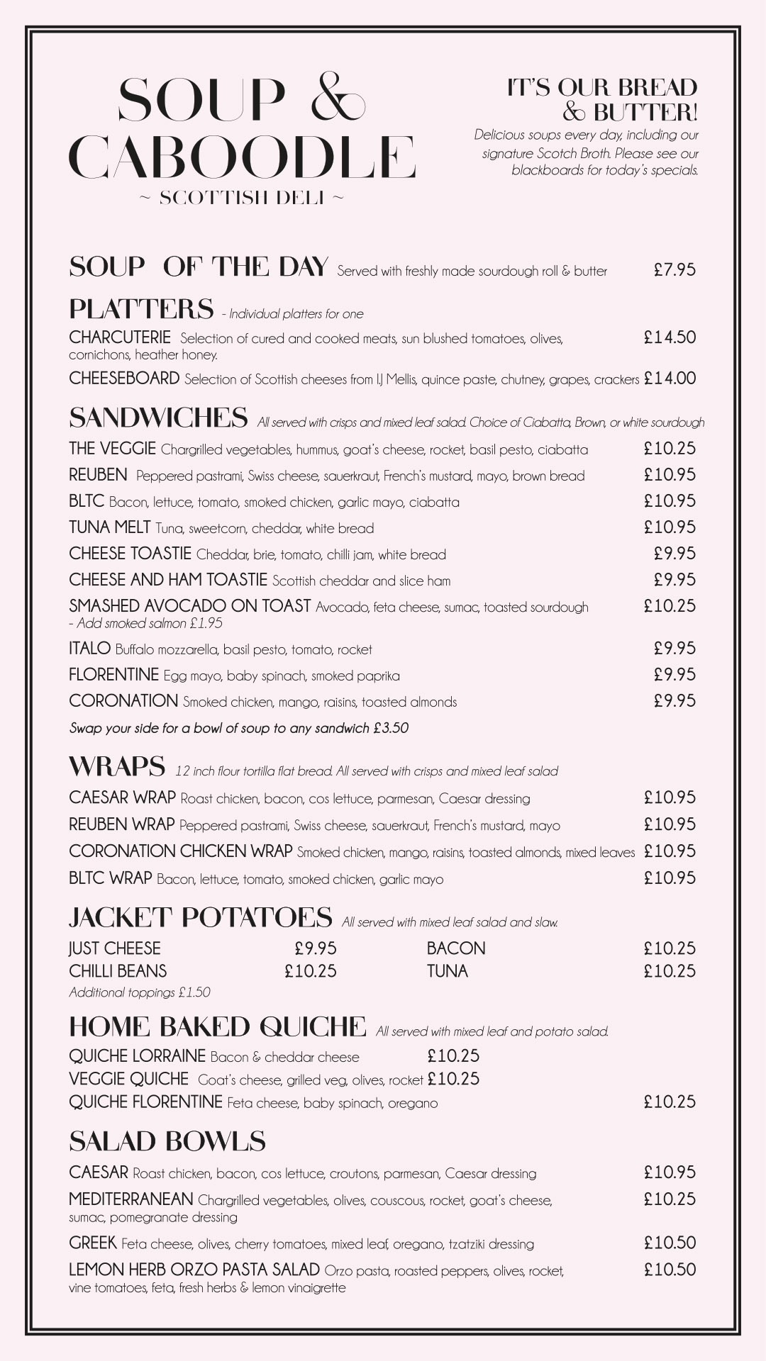 As well as dining out and eat at home options, Soup & Caboodle also offers you some beautiful deli produce sourced from across Scotland, including relishes and pickles, jams and jellies, sweets and treats, oils and sauces, groceries and many other types of fresh Scottish produce.